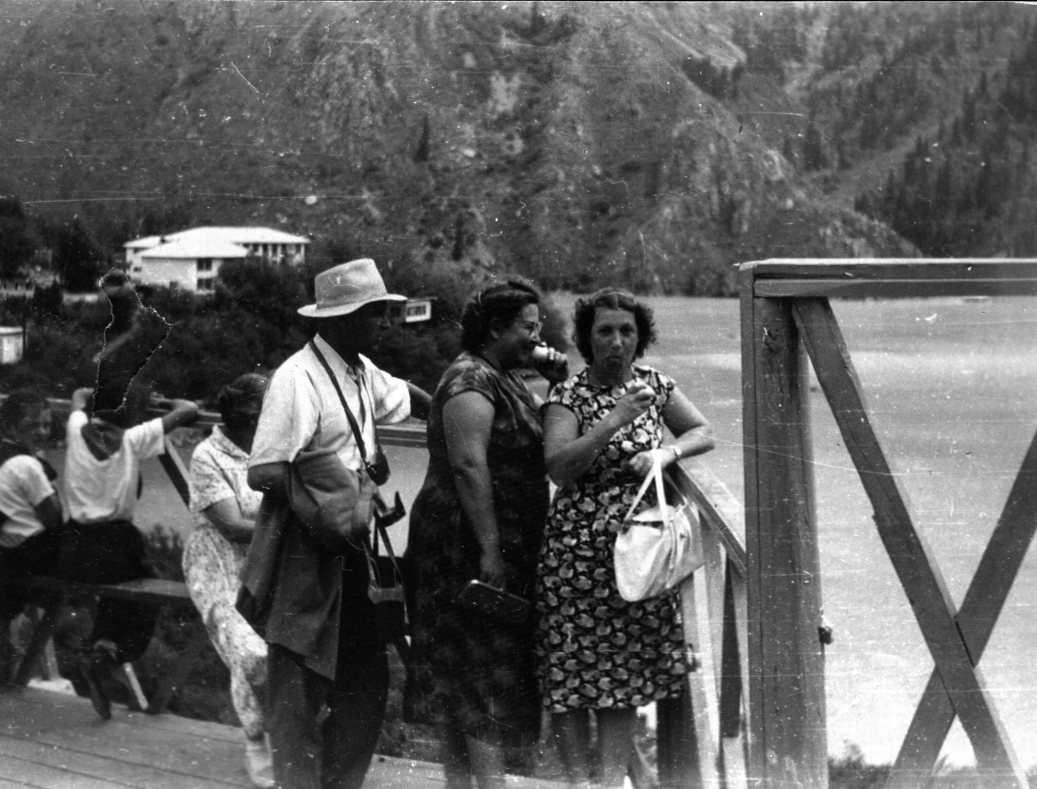 1961 г. Смотровая площадка на оз. Иссык. Слева здание гостиницы.