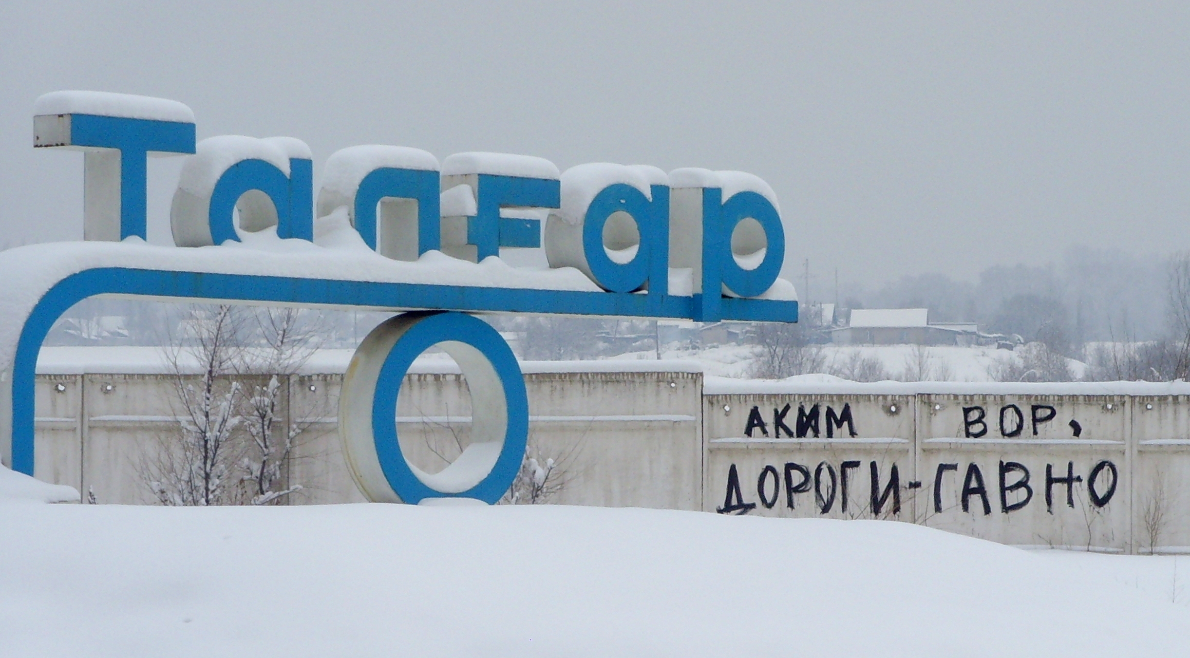 2010- Фото сделано 8.02.2010 при въезде с Города в г.Талгар, в обеденное время, видно кто то с вечера написал это, и не успели закрасить надпись.