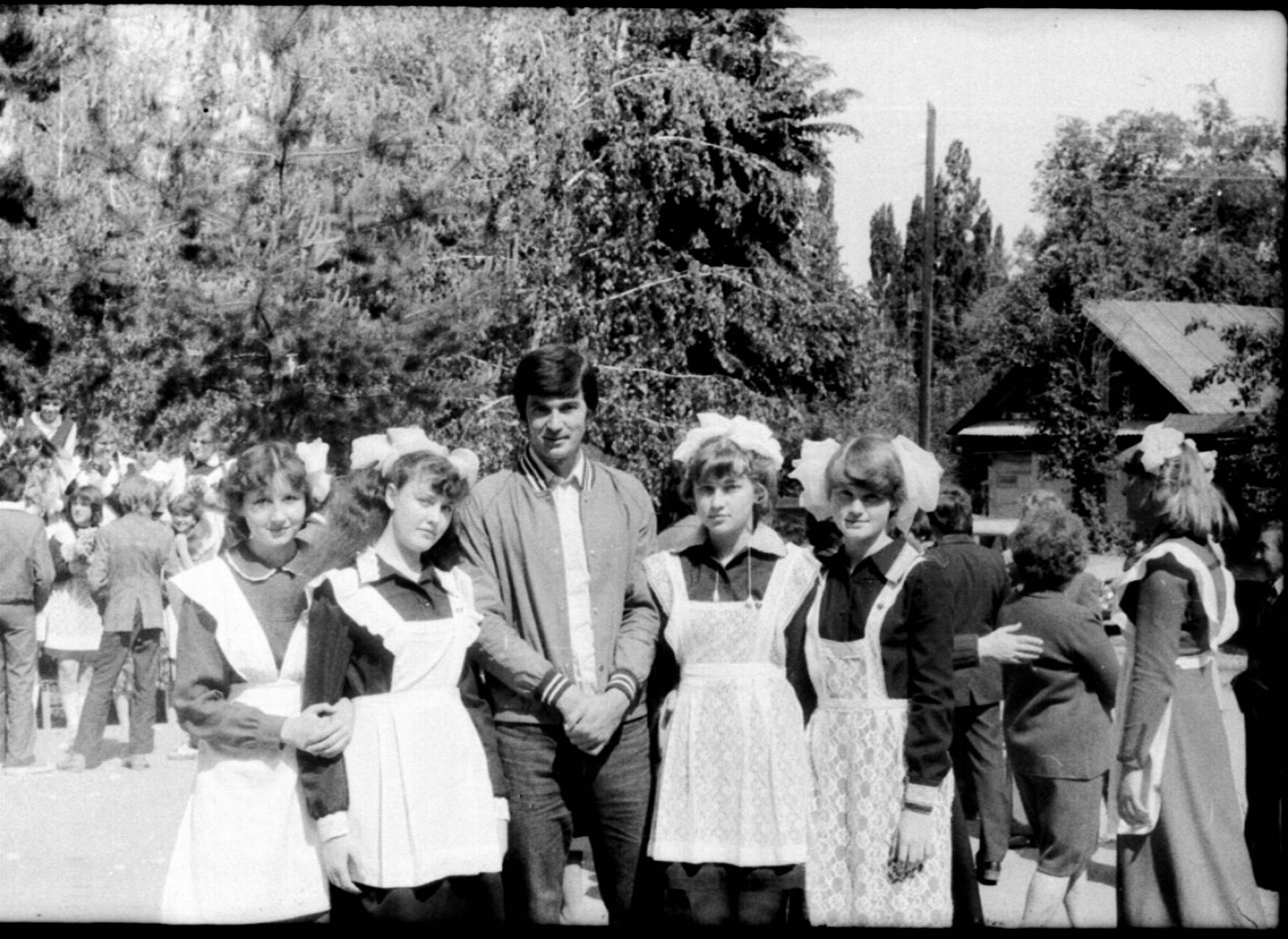 Ну, всё не всё, а вот кое-что... вернее - кое-кого, пожалуй, вспомнить удасться: по крайней мере, крайняя справа девица-красавица - вероятнее всего Светлана Кострома (весной 1983 г. - выпускница 10-го класса). Что же касается её одноклассницы - юной русоволосой прелестницы, стоящей "по правую руку" от бравого молодца - то именно она, как мне думается, запечетлена на одном из "исторических" фото, которое пользователь "Леший" прокоментировал следующим образом: